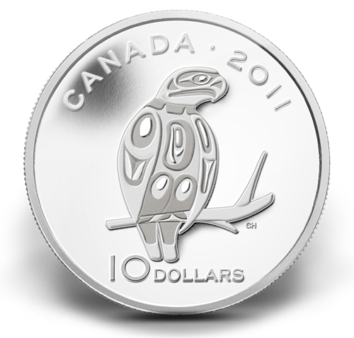 One in a series of four coins designed by Canadian Aboriginal artist Corrine Hunt- designer of the gold, silver, and bronze medals, produced by the Royal Canadian Mint, for the Vancouver 2010 Winter Olympic Games. Other coins available in this series...