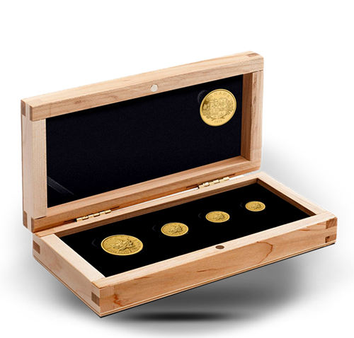 - A rare set featuring four numismatic quality Gold Maple Leaf Coins in fractional denominations.