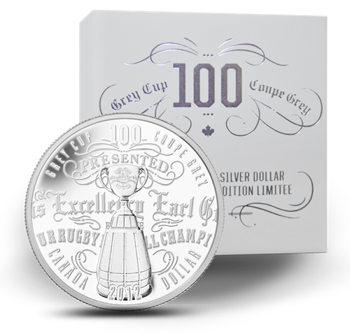 The Grey Cup® game, the championship of Canadian professional football, is the country’s single largest annual sporting event, attended by thousands and watched by millions every year. We are proud to commemorate the truly Canadian icon that is the Grey Cup witha limited edition proof silver dollar.
