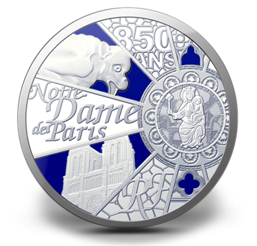 • Your beautiful coin celebrates the 850th anniversary of the construction of the Notre-Dame de Paris Cathedral.