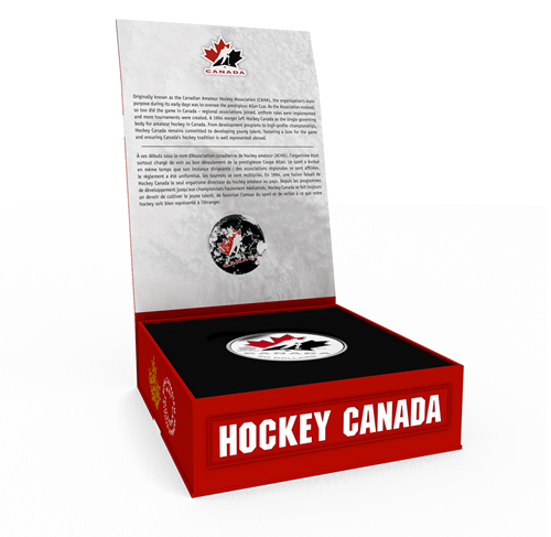 Your coin is encapsulated and presented in an officially licensed Hockey Canada paperboard box.