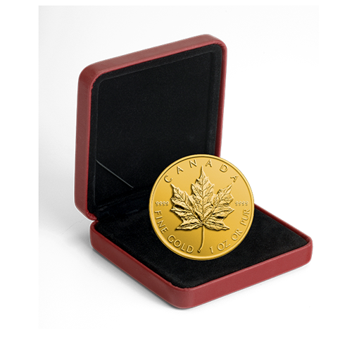 Premium version of the popular Gold Maple Leaf bullion design!