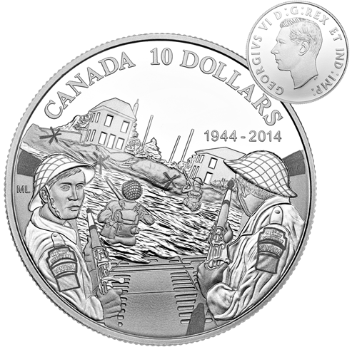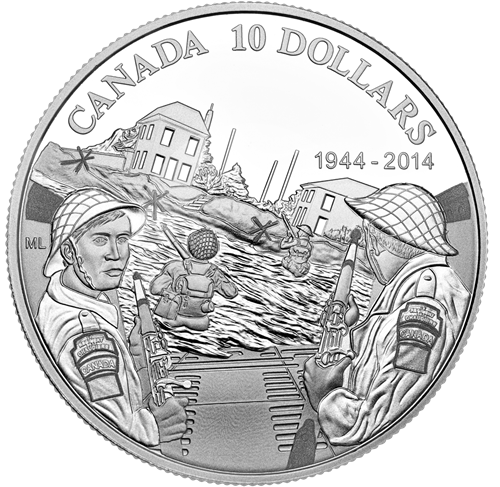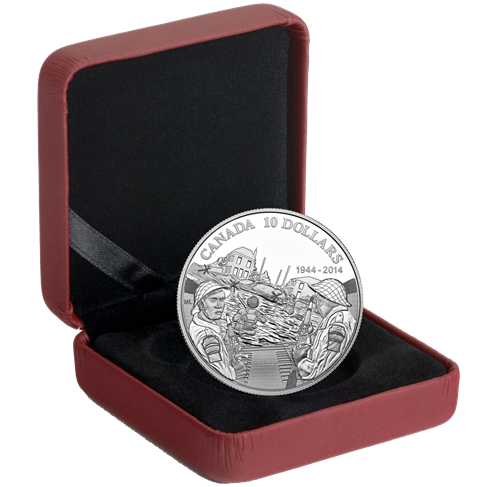 In commemoration of the 70th anniversary of D-Day, this finelydetailed coin offers a unique first-person perspective of the peril faced by Canadian soldiers during their landing at Juno Beach. The detailed design serves as a heartfelt tribute to the Canadian veterans of the Second World War, and their enduring legacy ofservice and sacrifice in Normandy and beyond.