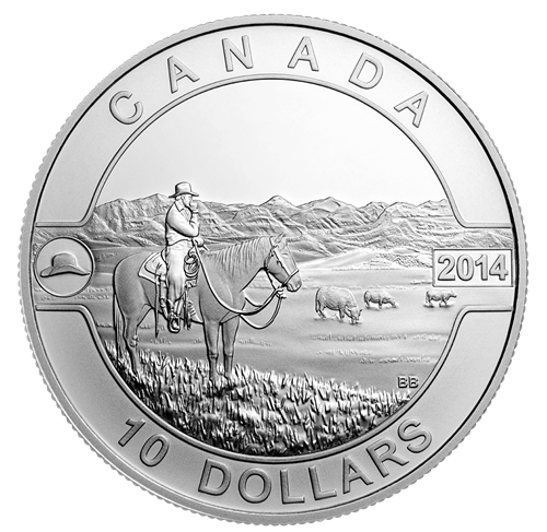 • The seventh coin in the Royal Canadian Mint's exciting new 2014 O Canada series focusing on iconic Canadian images pays tribute to the Canadian Cowboy.