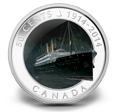 • Your coin commemorates the 100th anniversary of the loss of RMS Empress of Ireland as itrecreates the conditions leading up to the worst disaster in Canadian maritime history
