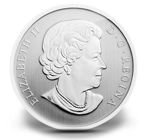 Your coin was designed by Canadian artist Steve Hepburn and presents a dynamic stylized pastiche of soccer images. Dominating the image is a soccer player, right leg thrown back to make a powerful kick. The player’s target is a large soccer ball upon which a mapof Canada replaces one of the dark patches. Below the image of the player, three young children play soccer in a field of grass—a boy prepares tokick the ball while two girls approach him from either side; all the young players are dressed in the sport’s recognizable uniform of long shorts, jersey, tall socks, and soccer cleats. In the upper right corner of the image, backed by a cheery yellow sunburst, a large stylized image of a Canadian crowd, arms extended to the sky, waving flags and pennants and flanked by swirling maple leaves, is reminiscent of the building wave of enthusiasm for the sport. The background is dominated by the well known green of the soccer pitch along with colourful ‘swoosh’ marks flying from behind the ball and complex line patterns recalling soccer nets.