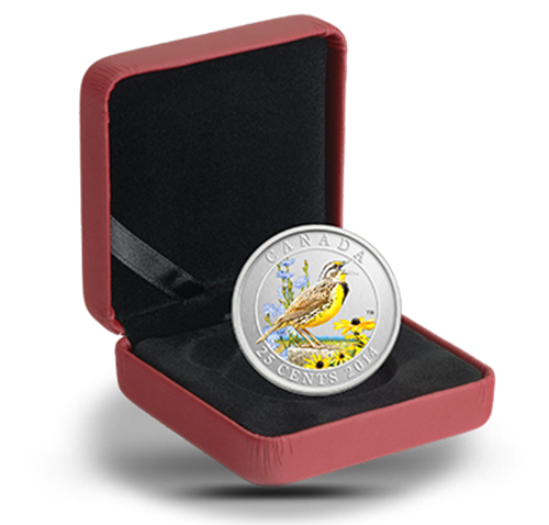 • The vibrant coloursin your coin bring to life the brilliant colouring of the eastern meadowlark and the wildflowers that are part of the songbird's grassland habitat.