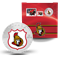 Your coin is presented in a folder which pops up to showcase the team’s jersey! This set also comes with two commemorative stamps.