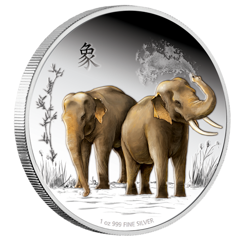 1 oz. Fine Silver Coin - Feng Shui: Elephants (2015)