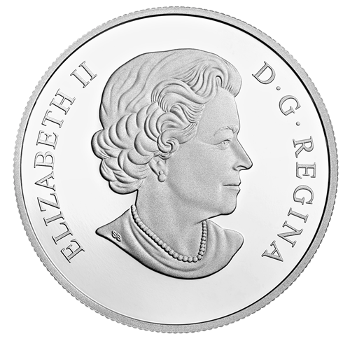Your coin features mirror-image landscapes of the Rocky Mountains andMount Fuji. The one half of the design presents a well-known scene of Jasper National Park's Spirit Island, located on stunning Maligne Lake. The jagged, unmistakable peaks of the Rockies rise into the distant background, following the lake's rocky, spruce-lined water line. Opposite this image and mirroring its composition on the other half of the reverse is a landscape portrait of snow-capped Mount Fuji, as it is often depicted in art and photography. In the foreground, graphically reflecting an island of spruce in the Rocky Mountain scene, a Japanese Black Pine rises skyward. The two scenes are bisected by a horizontal band bearing the mirrored bilingual phrases ""ROCKY MOUNTAINS – MONTAGNES ROCHEUSES" and "MOUNT FUJI – MONT FUJI." The design also incorporates the Japanese text for "Rocky Mountains" and "Mount Fuji."