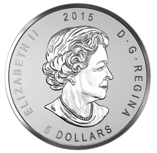 Unchanged from each bullion coin issued annually, the iconic maple leaf—that mighty national symbol of Canada, its people and its pride—is featured on the reverse of this fine silver numismatic coin. Intricately engraved in fine detail, the single leaf's serrated edges and deeply veined lobes are rendered in a way thatadds texture to the leaf, which shimmers in a brilliant finish set against the frosted background. The official flower of the state of Illinois, the PurpleViolet (Viola sororia), is micro-engraved on a small area of the reverse. Remarkably detailed on such a small scale, this unique privymark stands as a celebration of the Mint's attendance at the 2015 ANA World's Fair of Money in Chicago, Ill., as further indicated by the engraved acronym "ANA" and the word "CHICAGO".