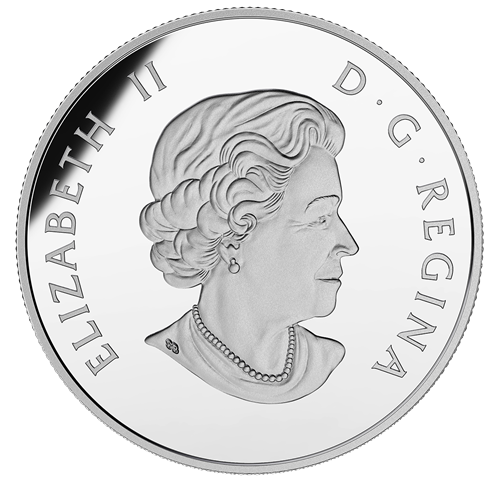 Designed by Canadian artist Glen Loates, your coin depicts a young mountain goat (Oreamnos americanus) with its mother in the wild,mountainous terrain of western Canada. This side profile of a young goat, offers the viewer a close view of the animal's muscular forequarters and cloven hooves, which allow it to move with stunning ease at seemingly impossible heights. Enhanced by selective colouring, the kid's black mouth, noseand eyes stand in contrast to the white wool coat that softens its already-innocent expression. Standing protectively next to the kid is the mother goat—whose slender horns, pronounced shoulder hump and long wool coat are beautifully rendered with finely detailed engraving. In the background, the distant rocky peaks add a sense of depth to the image and help convey just how high this mother and child are, as they stand together on a rocky slope near an evergreen and are surrounded by brightly coloured wildflowers.