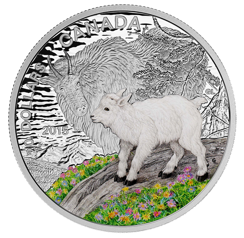 1 oz. Fine Silver Coloured Coin - Baby Animals: Mountain Goat - Mintage: 7,500 (2015)