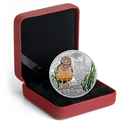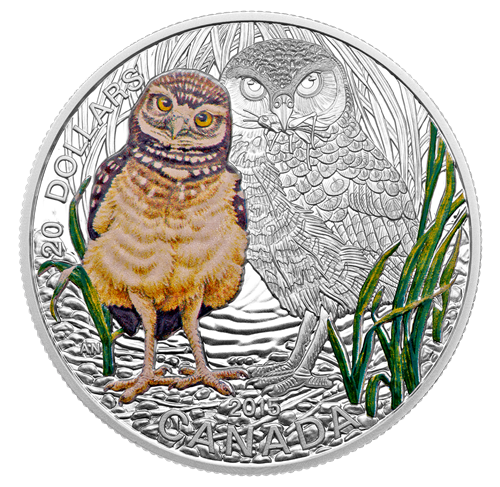 1 oz. Fine Silver Coloured Coin - Baby Burrowing Owl - Mintage: 7,500 (2015)