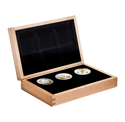 • Each proof coin in the subscription is 99.99% pure silver, with selective gold plating.