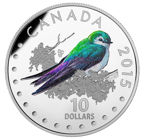 The 5-coin Colourful Songbirds of Canada subscription featuresfive birds, each beautifully painted on fine silver! A perfect gift for someone who enjoys how the Royal Canadian Mint depicts birds on silver coins.