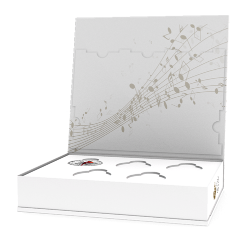Receive a FREE MUSICAL box to store your five coins: shipped with the fifth and final coin