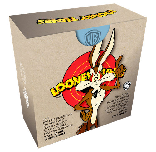 • Each coin comes packaged ina box that mimics an AMCE crate, which was a fixture in Looney Tunes shorts whenever Wile E. Coyote would have a contraption shipped to him!