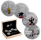 • Crafted from 99.99% pure silver, each coin’s engraving is enhanced by the use of different finishes.