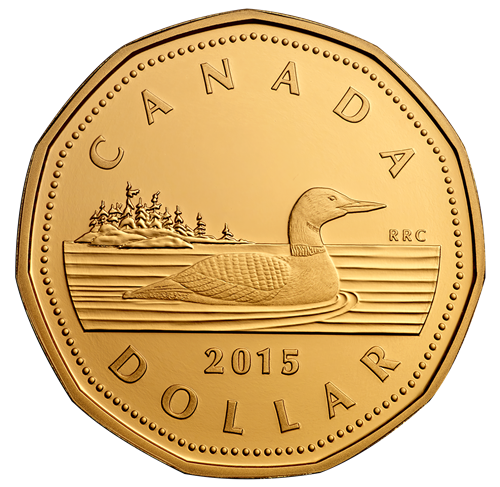 • 1 dollar(loonie) coin struck in 99.99% pure silver coin with selective gold plating