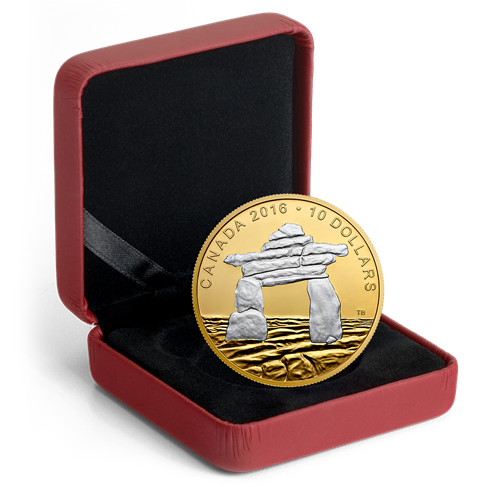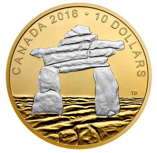 1/2 oz. Reverse Gold-Plated Fine Silver Coin - Iconic Canada: Inukshuk - Mintage: 6,000 (2016)