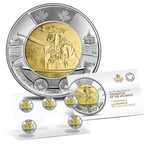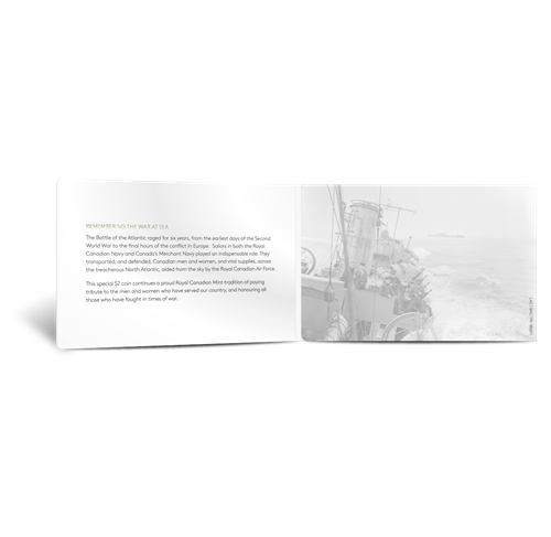 The Royal Canadian Mint is proud to honour the courage and sacrifice of those who served in the Battle of the Atlantic.With this special 75th Anniversary of theBattle of the Atlantic $2 coin, we continue our long tradition of paying tribute to the men and women who have served our country.