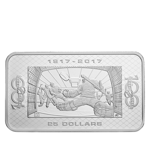 - A NET CAMERA VIEW OF CANADA'S BELOVED GAME! To mark the 100th anniversary of the National Hockey League, the coin's rectangular shape mimics the shape of a hockey net and provides a wider canvas for a sweeping action shot.