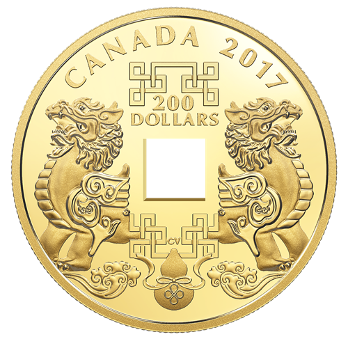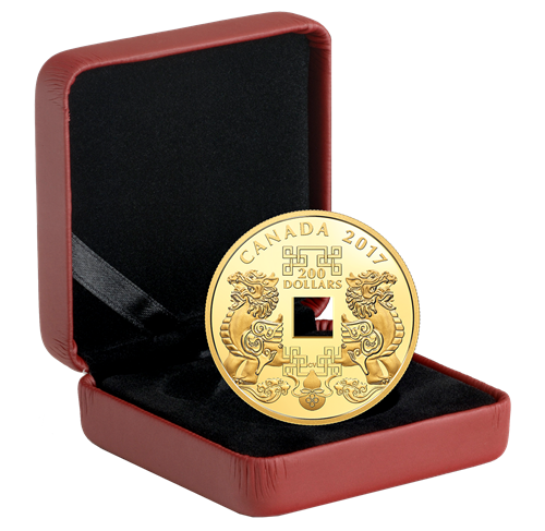 Like an ancient Chinese coin or charm, your coin features a distinctive square hole that easily sets it apart. The unique feature is flanked by a pair of engraved figures known as Pi Yao, the powerful Feng Shui cure forwealth. Enhanced by auspicious knots and a Wu Lou gourd that promotes good health,the richly symbolic design speaks of longevity, everlasting prosperity and protection from misfortune. A magnificent take on Chinese minting tradition!