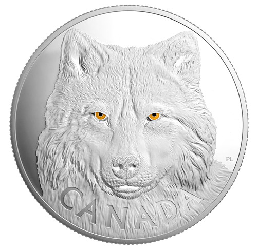 The eyes of a northern timber wolf (Canislupus occidentalis) are quick to size upany intrusion into its territory across the variedterrain of western Canada; yet its glowing gaze also conveys a sense of wisdom, pride and an enigmaticintelligence—as beautifully conveyed on the fourthcoin in an annual series that features exquisite enamel-enhanced portraits of Canada's wildlife.