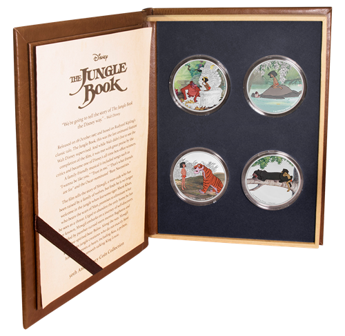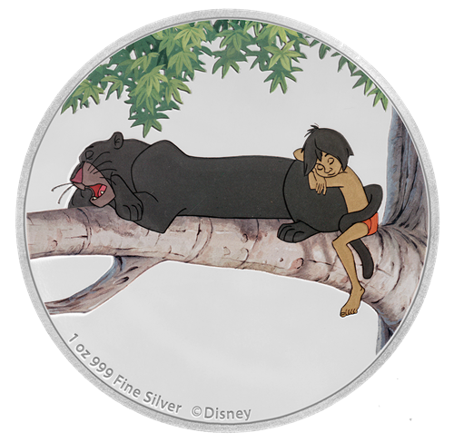 - CELEBRATES THE 50TH ANNIVERSARY OF THEJUNGLE BOOK! There are four 1oz pure silver coins in your collection. Each coin features a classic image of Mowgli with another key character from the film, namely Baloo, Bagheera, Shere Kahn, and King Louie. The artwork for all four coins is featured in full colour with selected engraving.