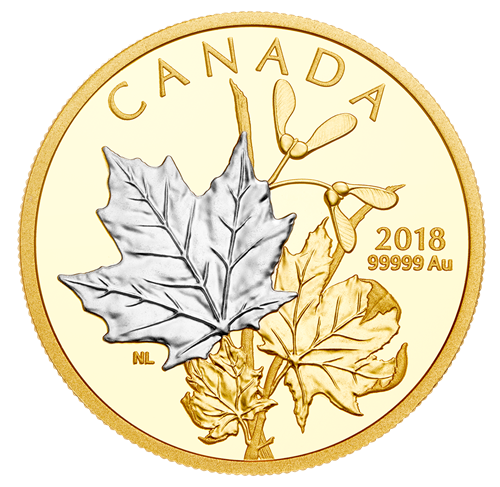 - SELECTIVE PLATINUM PLATING ON ONE COIN! For added elegance and a touch of visual contrast, a selective application of platinum plating highlights the largest, most prominent maple leaf onone coin.