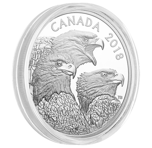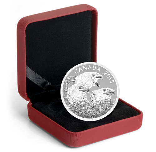 Bold. Powerful. Magnificent. Canada’s largest bird of prey has a commanding presence wherever it goes, whether in solitary flight or communally perched in the tall trees that give the bald eagle acommanding view. Masterfully engraved in an immaculate proof finish, your coin features a realistic representation of a convocation of bald eagles, whosesolemn expressions and piercing gazes reflect theirreputation as spiritual symbols of power and wisdom in the natural world.