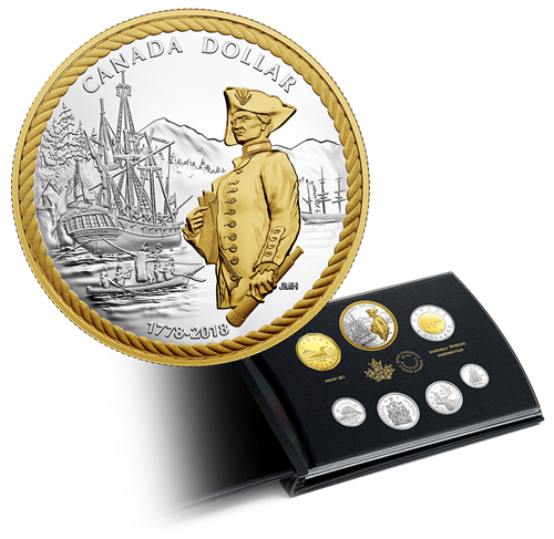 - AVAILABLE EXCLUSIVELY IN THIS SET! The gold plated 99.99% pure silver proof dollar only available in this set showcases an artistic rendering of Captain James Cook's arrival at Nootka Sound in April 1778. A MUST HAVE!