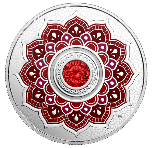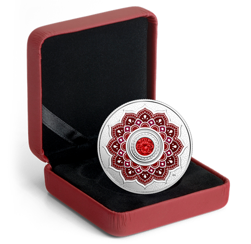 Your coin features a Swarovski® crystal that represents the month’s birthstone, the ruby! And a ruby’s blood-red colour makes it a fitting symbol of love and passion! The traditional birthstone for the hot summer month of July, a ruby is a symbol of zeal and is said to offer fortune, beauty, nobility and love. Ancient cultures also believed it had protective powers that could ward off evil.
