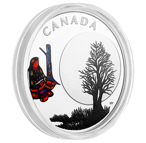 Sugar Moon brings a time of healing as we drink the maple’s sap after a long winter. More importantly, it’s about the spiritual health ofour lives. Do we honour and respect all our relations—the people, rocks, stars and trees? Do our daily actions contribute to their well-being? This coin’s beautiful woodland design is a powerful reminder how all creation nurtures and sustains us, and our responsibility towards all life according to Anishinaabe tradition.