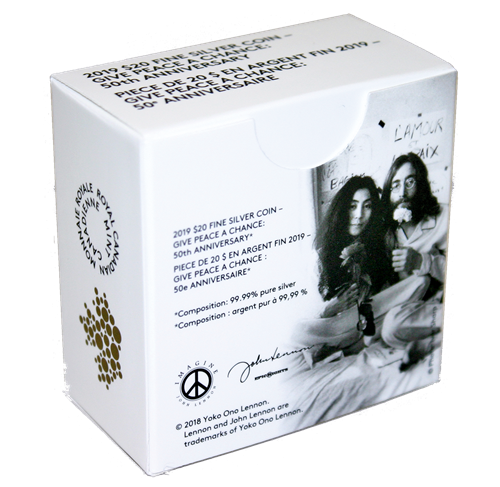 Give Peace a Chance, the powerful anti-war anthem was created in Canada during JohnLennon and Yoko Ono's famous Bed-In for Peaceheld in Montréal's Queen Elizabeth Hotel in May/June 1969. Forever etched in our collective memory, the world-famous event is now engraved in a puresilver collectible to mark its 50th anniversary. The coin features John and Yoko in one of their most famous and iconic images peacefully crafting a proud Canadian moment. Revisit a time when a cry for peace sparked a revolution that changed the world.