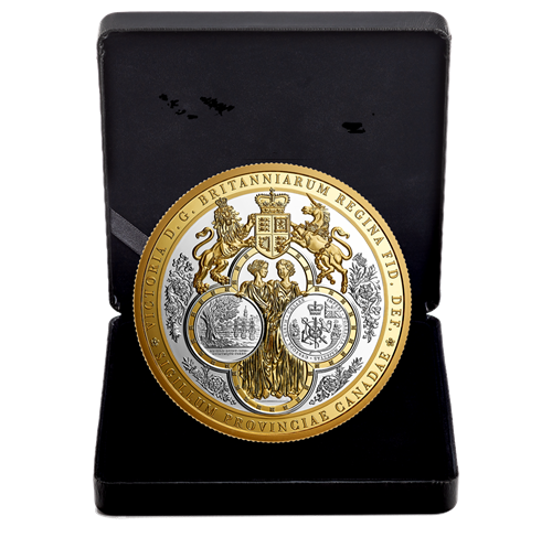 The design for this coin comes from an important moment in Canada's past. The official seal it is based on was created when Britain's two major Canadian colonies were brought together under a single government for the first time. The images in the design build on the separate seals of Upper Canada (nowOntario) and Lower Canada (now Quebec) and use popular Victorian imagery—all showcased in stunning detail on a large-format fine silver coin.
