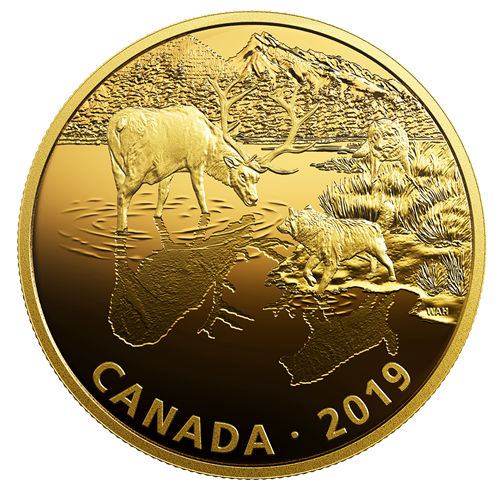 The Golden Reflections: Predator and Prey series celebrates wildlife, a favorite theme among collectors. Award-winning Canadian wildlifeartist W. Allan Hancock authors the design of this series. Every coin is masterfully engraved and plated in gold. Every coin features a scene with animals that are characteristic to the Canadian fauna.