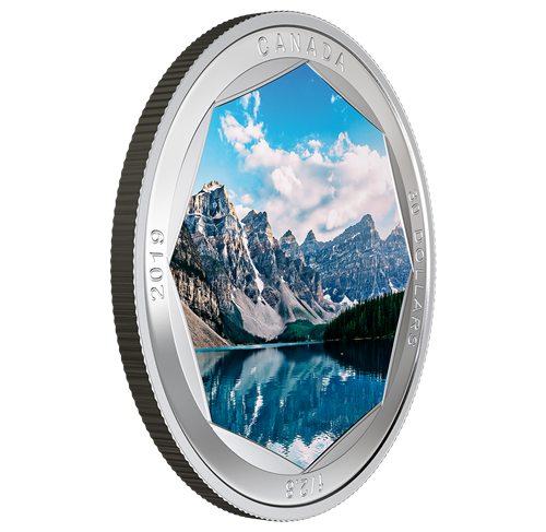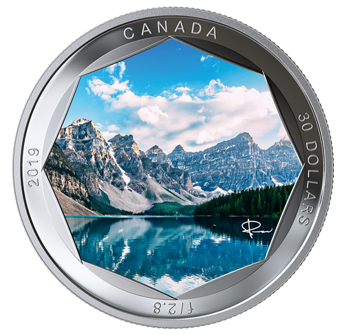 Your beautiful coin celebrates Moraine Lake in Banff National Park! Pure Silver Coloured Coin by Peter McKinnon. Buy online now!