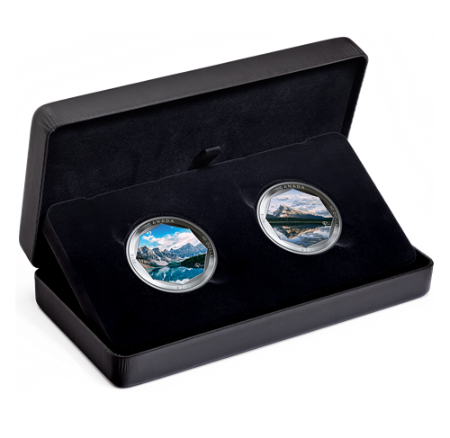 Two stunning photographs of Moraine Lake & Mount Rundle on two 2 oz. pure silver coins! Subscribe today on mint.ca!