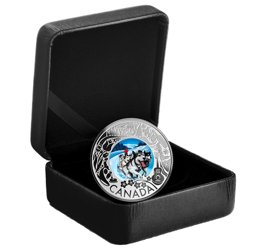 Picture yourself gliding across snow-covered trails, pulled by a team of high-energy sled dogs. Dogsledding was once a necessary means of transportation in the winter for the Indigenous peoples of Canada. Today, it is a recreational activity and a memorable winter experience to be had in our Great White North. The second coin in our Celebrating Canadian Fun and Festivities offers an antidote to the winter blues during Canada’s coldest month: adventure! The colourful reverse invites you to step into the frozen landscape, where a team of sled dogs kicks up powdery snow while rushing by.