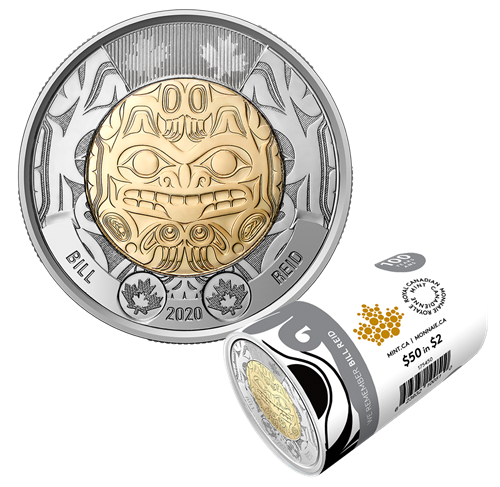 The 2020 $2 Bill Reid Commemorative circulation coin is a celebration of the Haida artist's legacy and of Haida culture. You'll find one (or more) of these coins in your pocket change, two in our special keepsake set, and 25 inside every Special Wrap Roll.