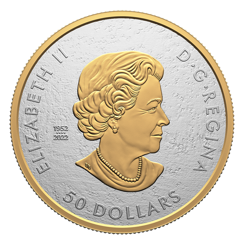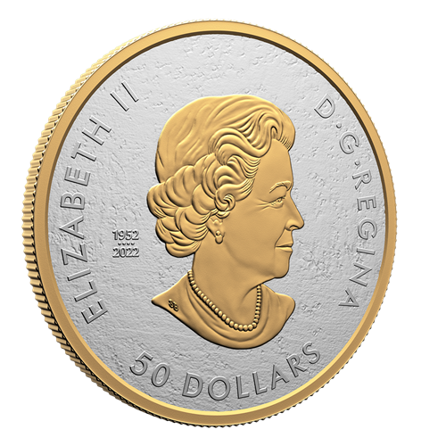 Enhanced with selective gold plating, your coin’s reverse features Walter Ott’s now-iconic maple leaf design that has graced every Silver Maple Leaf (SML) bullion coin since 1988. The SML design is flanked by intertwined vines and maple leaves designed by artist Tony Bianco, who also created the banner marking the 35th anniversary of the SML in 2023. The selectively gold-plated obverse features the effigy of Queen Elizabeth II by Susanna Blunt. The obverse also bears a special marking that includes four pearls symbolizing the four effigies that have graced Canadian coins and the double date of her reign.