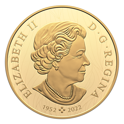 The coin’s reverse features an engraved rendering of Weather Watch – Bison by Canadian artist Robert Bateman. Shown in side-profile, a bison (Bison bison) remains alert while calmly resting on a sandy bank in the open grasslands. The reverse includes the text “CANADA 2024”, the denomination of “2500 DOLLARS” and an engraved reproduction of the artist’s signature. The obverse features a nature-themed pattern and the effigy of Queen Elizabeth II by Susanna Blunt. The obverse also bears a special marking that includes four pearls symbolizing the four effigies that have graced Canadian coins and the double date of her reign.