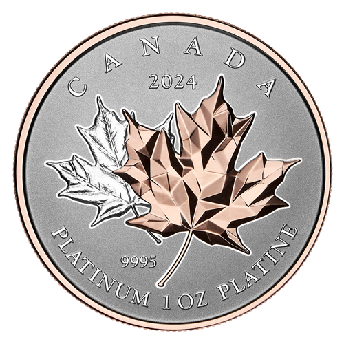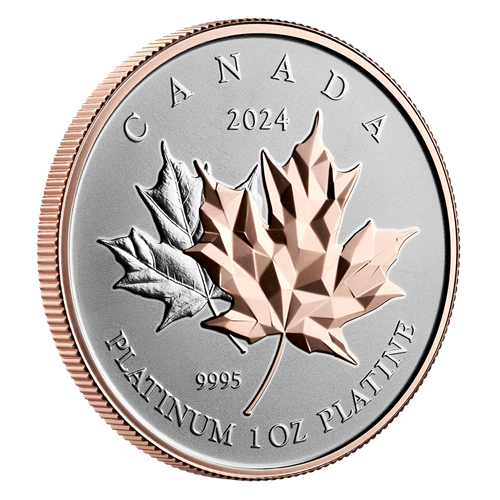 Add a rose-gold, multifaceted maple leaf to your platinum collection.