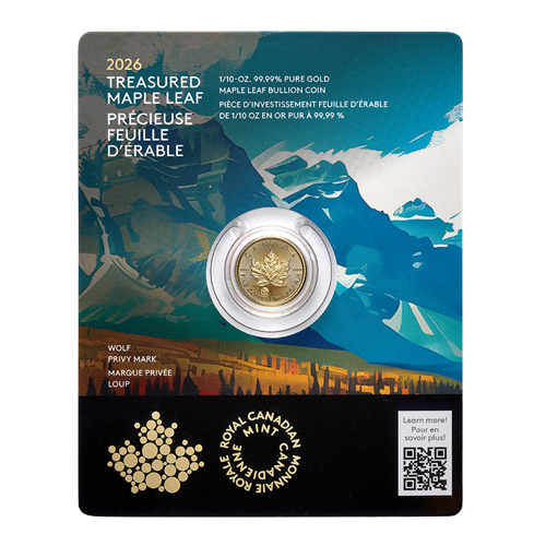 2026 Treasured Gold Maple Leaf: Wolf Privy Mark - 1/10-oz. 99.99% Pure Gold Coin (Premium Bullion)