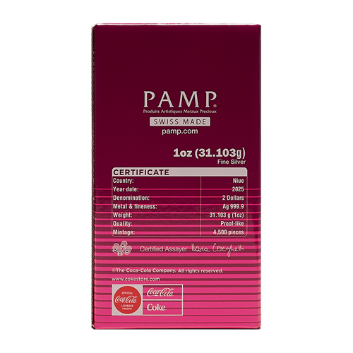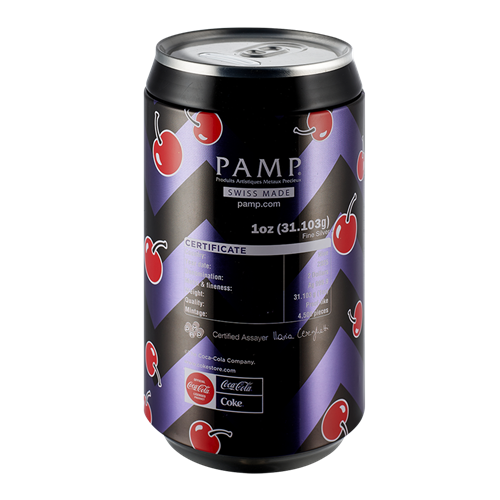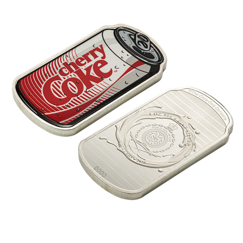 - Contains 1 oz. of 99.99% pure silver in the shape of a Cherry Coke can.