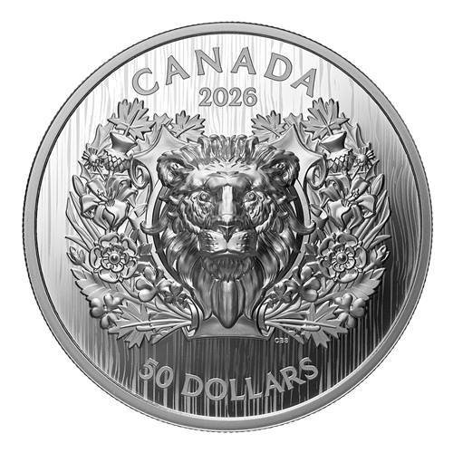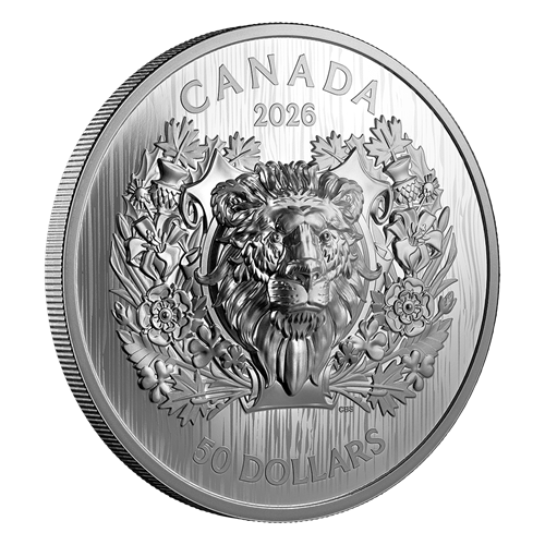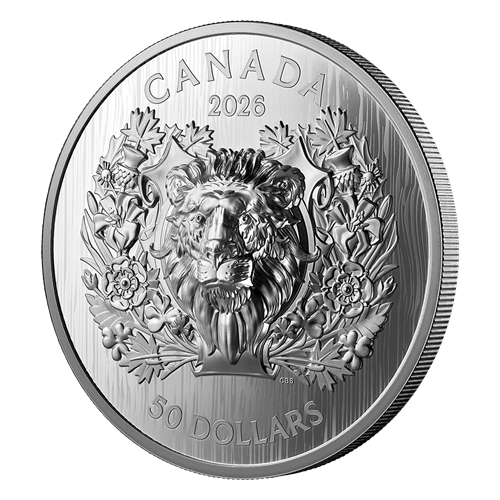 The follow-up to 2025’s Heraldic Bear, this 99.99% pure silver coin presents a different take on the lion found in many official Canadian emblems. Reimagined in a heraldically stylized manner, the stately creature is depicted in a forward-facing pose and sculpted in Extraordinarily High Relief (EHR), while the wreath of floral emblems is engraved in Ultra High Relief (UHR), resulting in differing, eye-catching relief heights.