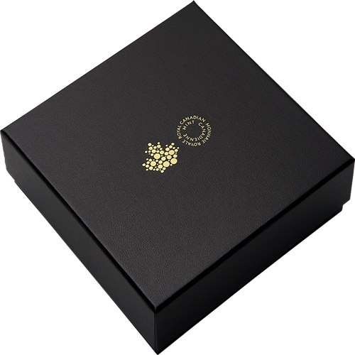 Your coin comes encapsulated and presented in a Royal Canadian Mint-branded, black lacquered wood case protected by a black beauty box.