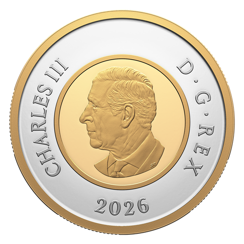 Commemorating the centenary of The Royal Canadian Legion, the Proof Dollar in this set is enhanced with selective rose gold plating. The reverse design by Canadian artist Steve Hepburn presents two Legion members standing in Remembrance, set against the maple leaf from the Legion’s official crest. In the background, the fabric pattern symbolizes the Legion’s role as a national community service organization, woven into the social fabric of Canada. Arching the bottom, the floral arrangement consists of 14 poppies—one for each Canadian province and territory, and another for the Legion’s international branches. On the right side or east of the floral arrangement, a forget-me-not flower, a symbol of Remembrance in Newfoundland and Labrador. Beneath this, three poppies from the Legion’s official crest, adorn the scroll banner marked with the anniversary dates “1926” and “2026”. The obverse features the effigy of His Majesty King Charles III by Canadian artist Steven Rosati.